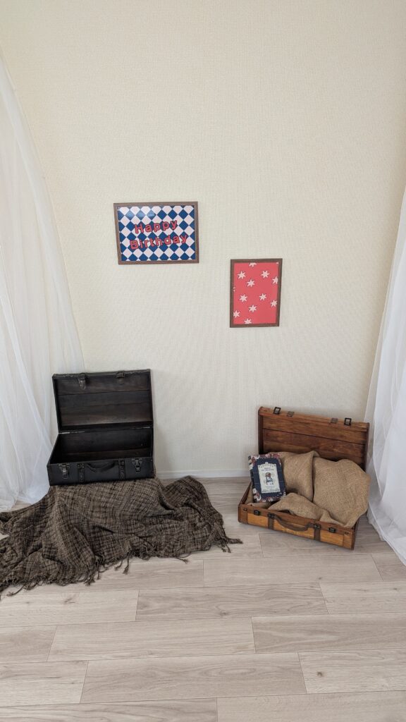 あとは当日、ご家族が持参してくださる思い出いっぱいのおもちゃをセッティングして完成です。