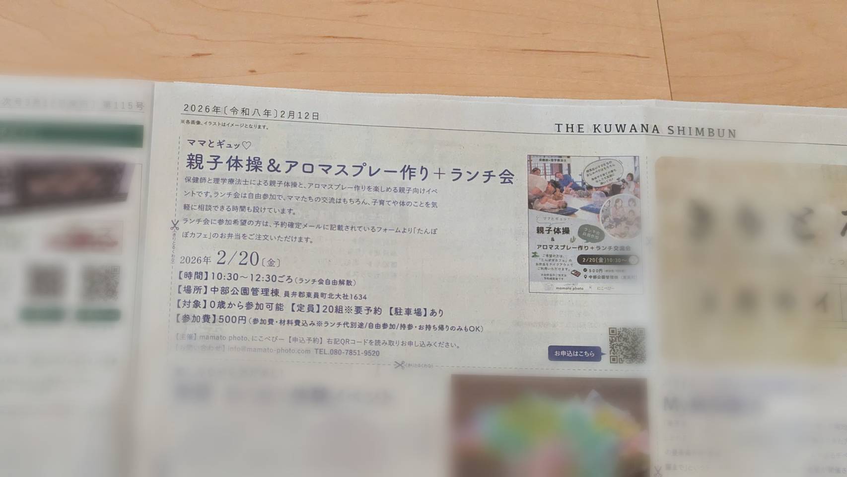 お知らせ2026年2月14日くわな新聞さんに掲載していただきました|桑名市 フォトスタジオ mamato photo