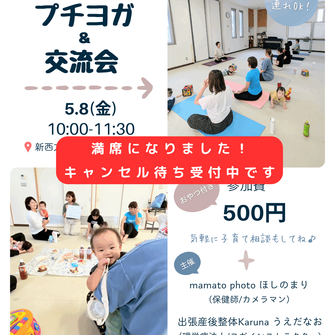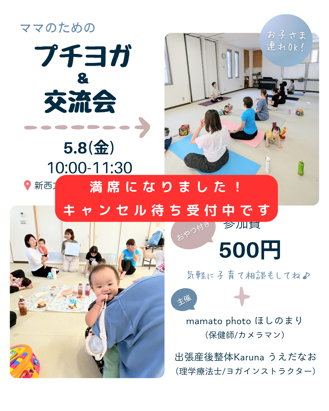 5/8(金)開催の「プチヨガ&交流会」は、満席となりました。
