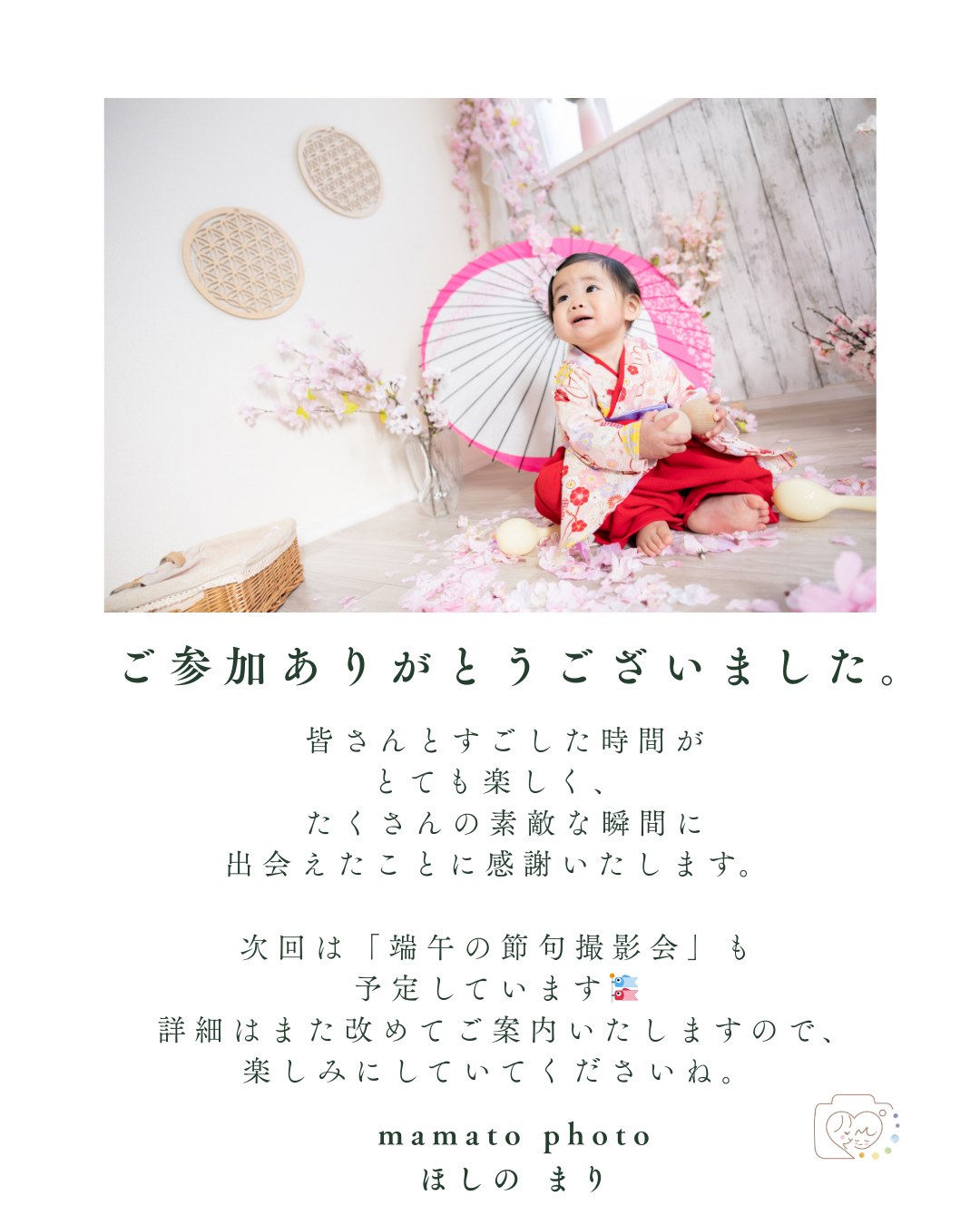 次回は端午の節句撮影会を予定しています