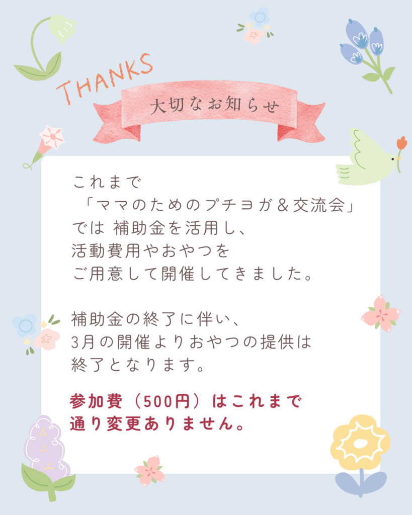 次回の「ママのためのプチヨガ&交流会」は、
