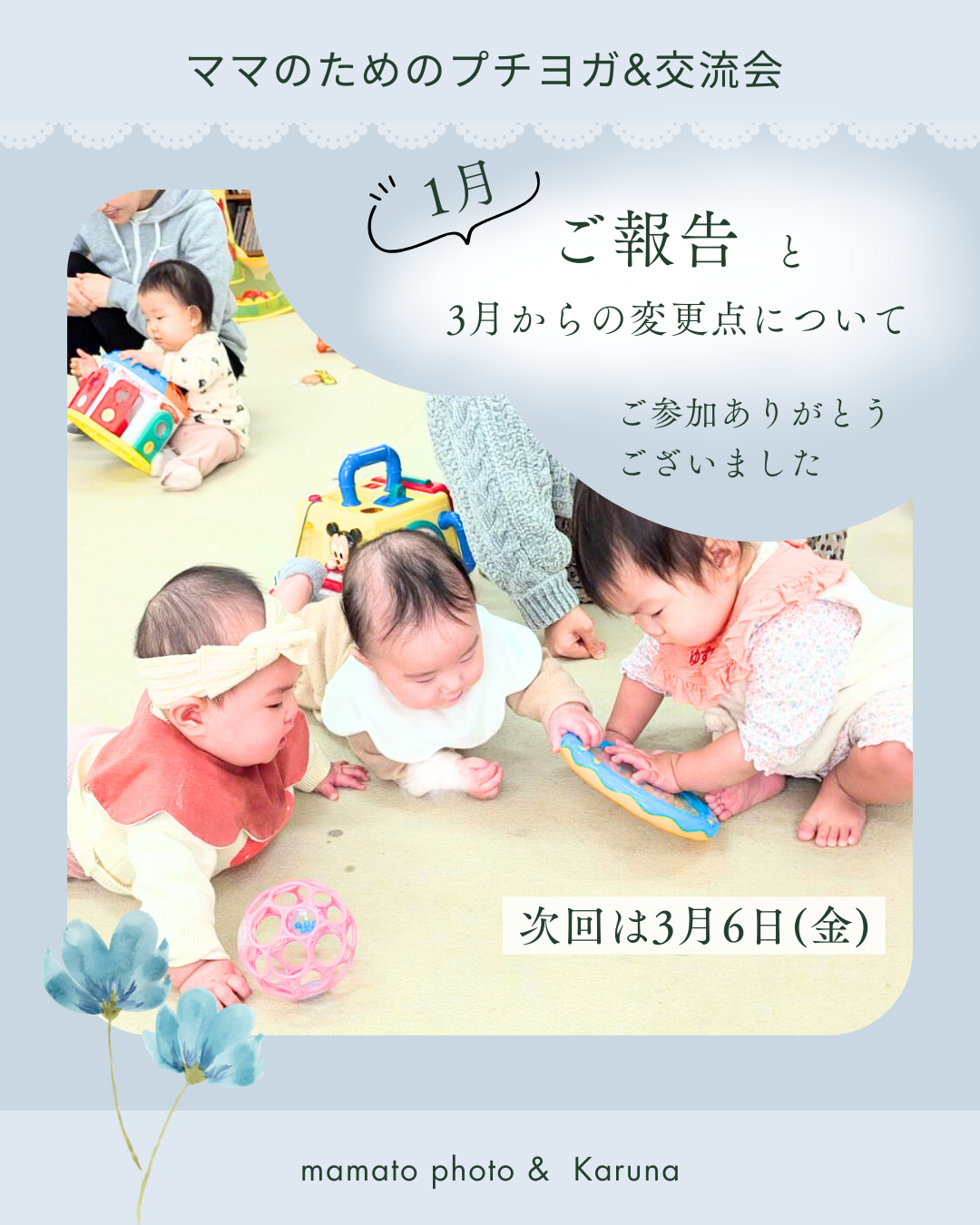 1月の「ママのためのプチヨガ&交流会」にご参加いただき、
